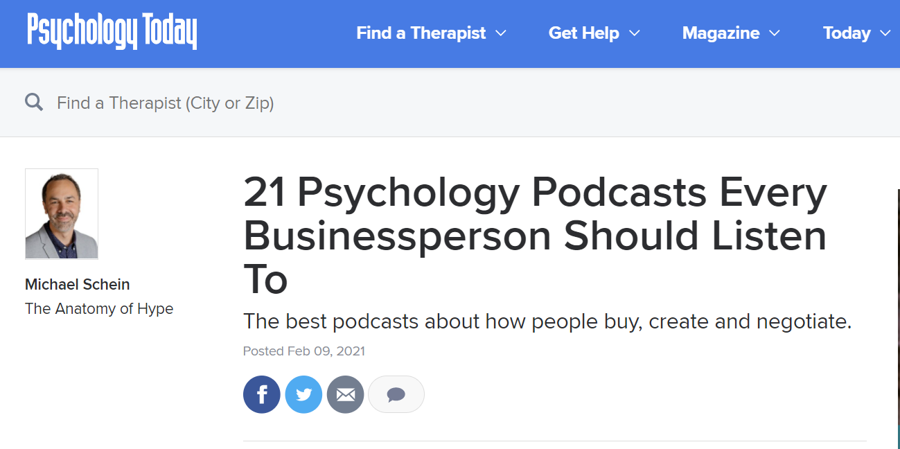 We were featured in Michael F. Schein’s ‘21 Psychology Podcasts Every Businessperson Should Listen To’.